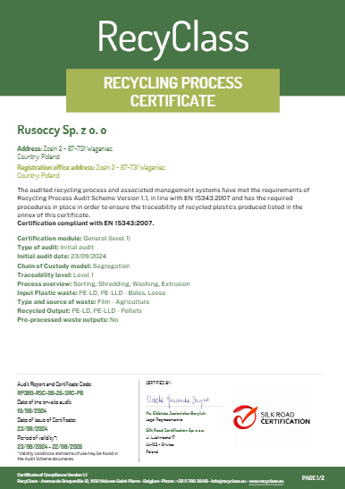 Certyfikacja Procesu Recyklingu jest audytem w miejscu pochodzenia dla łańcucha dowodowego tworzyw sztucznych pochodzących z recyklingu.